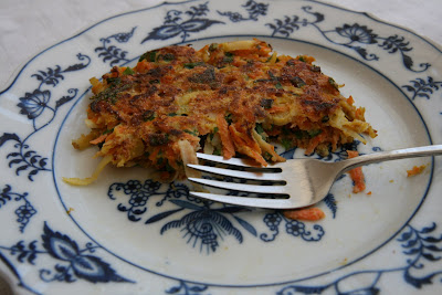 Carrot patties with a mixed salad and a strawberry dessert - looks good, doesn't it ? And it tastes even better than it looks.